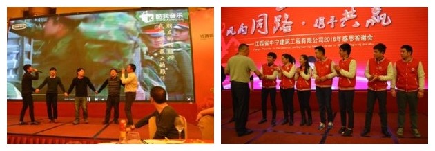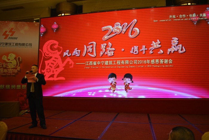 晚上19:07分,在南昌市红谷滩区秋水广场旁泰耐克大酒店,伴随着鞭炮音乐声,江西省中宁建筑工程有限公司2016年迎新春晚会正式拉开序幕。